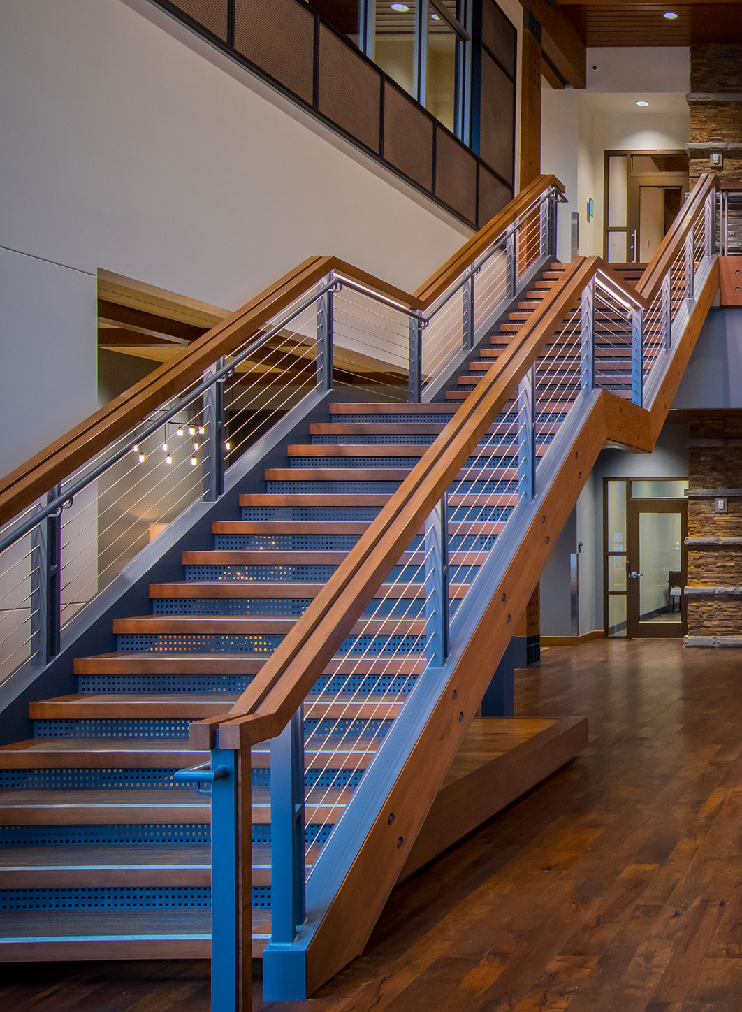 Stained Maple and Plastic Laminate highlight the quality of the millwork in the mortgage office located in Madison, WI. With dark and light stains, we were able to show that wood can be presented in many ways.